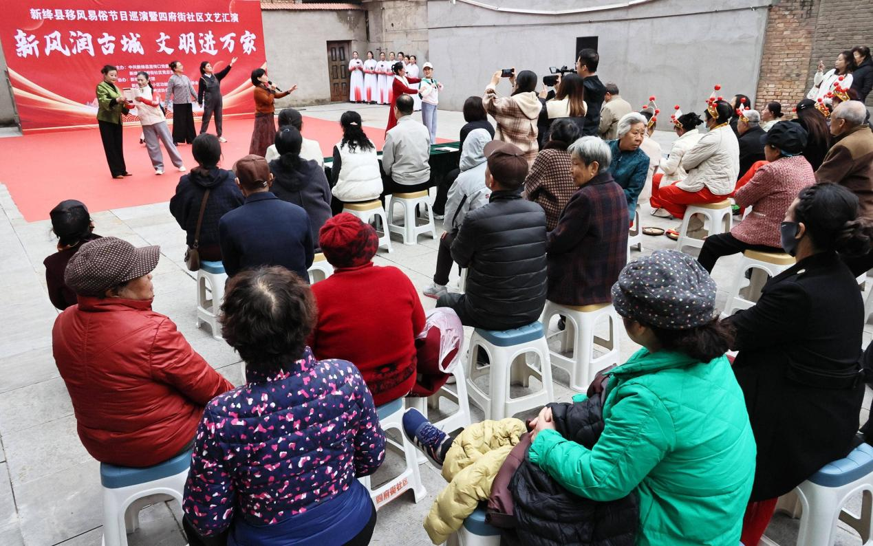 近日,一场以“新风润古城 文明进万家”为主题的移风易俗文艺巡演暨社区文艺汇演活动走进运城市新绛县信合小区。活动现场,群众文艺工作志愿者们精心准备了小品、情景歌舞、戏歌、鼓乐等丰富多彩且深受群众喜爱的文艺节目,为社区居民们送上了一场移风易俗精神文明盛宴。