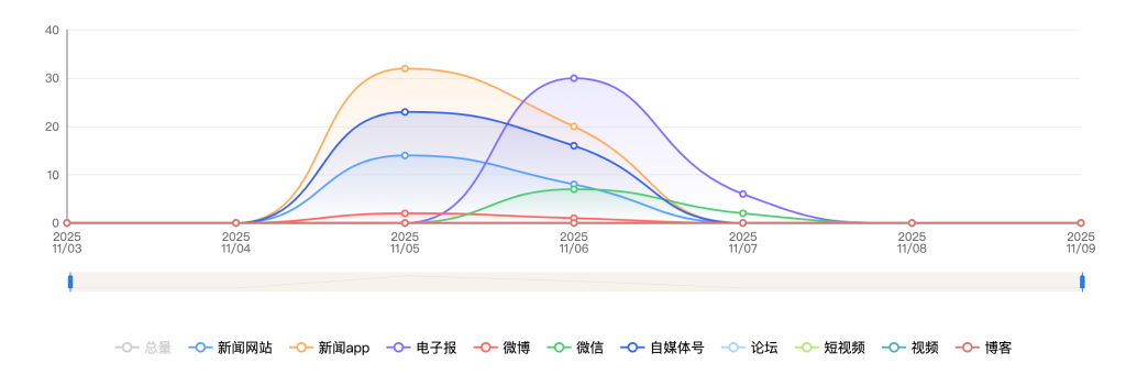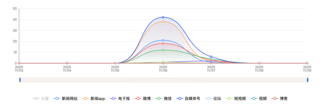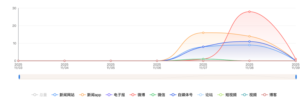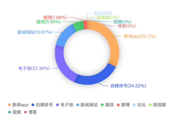 截至目前,该文章在互联网上传播总量共98篇。各信源的信息发布情况中,微博和新闻APP占比最大,其次是自媒体号。(数据来源:新华睿思·数媒智慧分析平台)