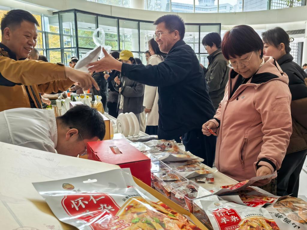 怀仁刘姥姥食品开发有限公司负责人张跃军守着自家的羊肉展位,不时给咨询的职工递上试吃的小包装:“我们的羊肉选自雁门关塞外的散养羊,肉质紧实不膻。”职工周伟品尝后当即下单:“冬天炖羊肉正合适,有指数认证,买着放心。”