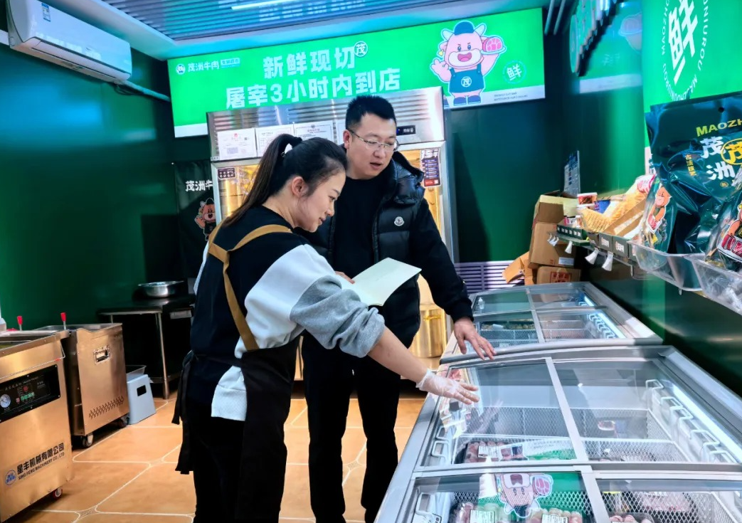 在安泽县经营茂洲牛肉加盟店的赵晶,对总部的全产业链支撑感触颇深。“加盟之初最担心的就是货源和品质不稳定。”他坦言,“企业从养殖、屠宰到配送的全流程把控,让我们这些加盟商彻底没了后顾之忧。特别是每天清晨的定时配送,确保门店营业时货架上都是最新鲜的产品,这让我们的销售底气十足。”