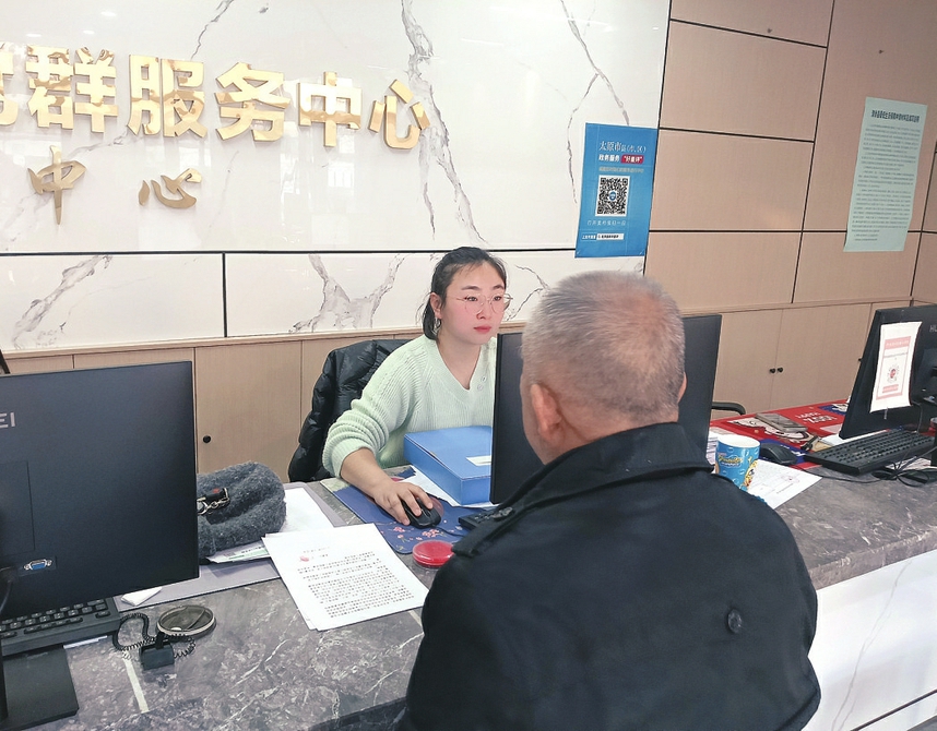 清徐县东湖街道春苑社区的工作人员帮辖区内老人办理业务。