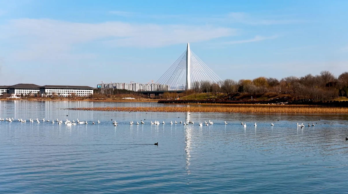 碧波如镜的太行天池,又见精灵归来。长治漳泽湖国家城市湿地公园,迎来冬日贵客——百余只白天鹅翩然而至。它们悠然游弋,雪羽点翠波,曲项映晴空,为静谧湖面添上灵动诗行。白天鹅与碧水共舞,绘就一幅自然和谐的生态画卷。(摄制/孙兵兵 文字/韩焰)