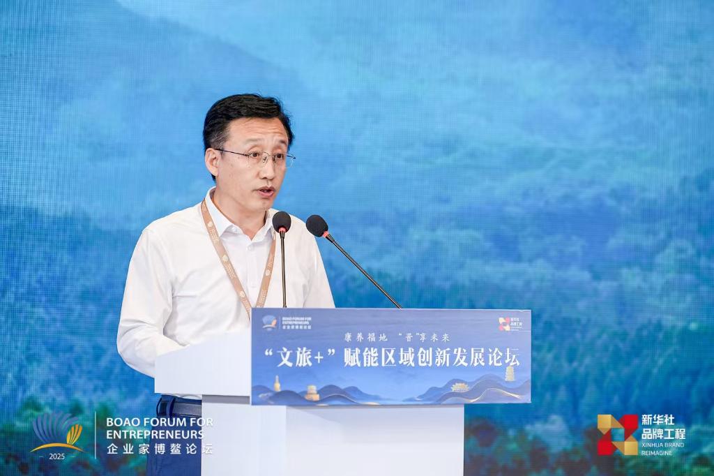 新华网太原12月5日电(王亮 赵睿)“南海之滨,我们共叙发展;吕梁山上,离石静候君临。”12月5日,在海南省琼海市博鳌镇举行的2025企业家博鳌论坛“康养福地 ‘晋’享未来——‘文旅+’赋能区域创新发展论坛”上,山西省吕梁市离石区委常委、宣传部部长刘继忠讲述了资源型地区以文旅破题转型的生动实践和以融合驱动城乡共富的发展路径,并诚挚邀请各界人士走进离石,感受这里的山河气韵、人文温度与创新脉搏。