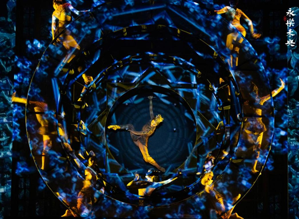 舞台上,备受赞誉的“藻井团龙”群舞以精妙的队形变幻与手臂交叠,复现出古建筑斗拱层叠的美。而“迁建者群舞”则以充满力量感的群体动作,再现了当年青年建设者们托举榫卯彩画的众志成城。