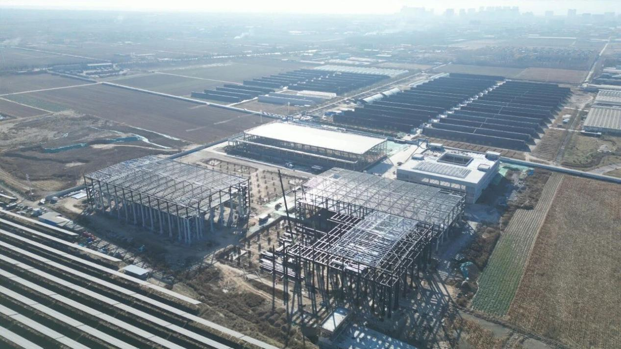 在曲沃县智慧菜谷园区,59栋智能温室大棚接近完工,4栋育苗棚、11栋种植棚即将投用,逐渐构建起“加工-仓储-流通-检测”的农业产业闭环。