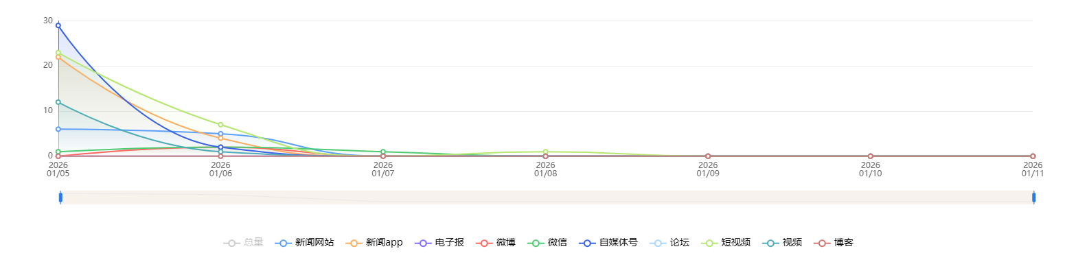 截至目前,该文章在互联网上传播总量共9236篇。各信源的信息发布情况中,微博占比最高,其次是自媒体号。(数据来源:新华睿思数据云图分析平台)