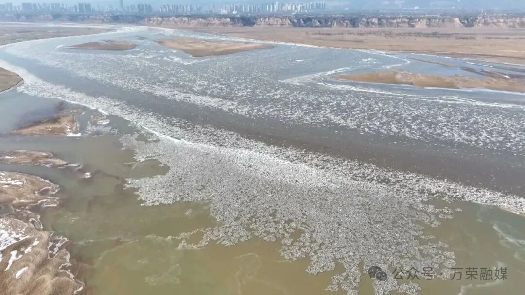 位于山西省运城市万荣县的黄河万荣裴庄段,近日迎来了流凌景观。流凌的出现是黄河即将进入封冻期的信号,漂浮的冰凌不仅为冬日黄河增添了灵动气息,更折射出流域生态保护的良好成效。
