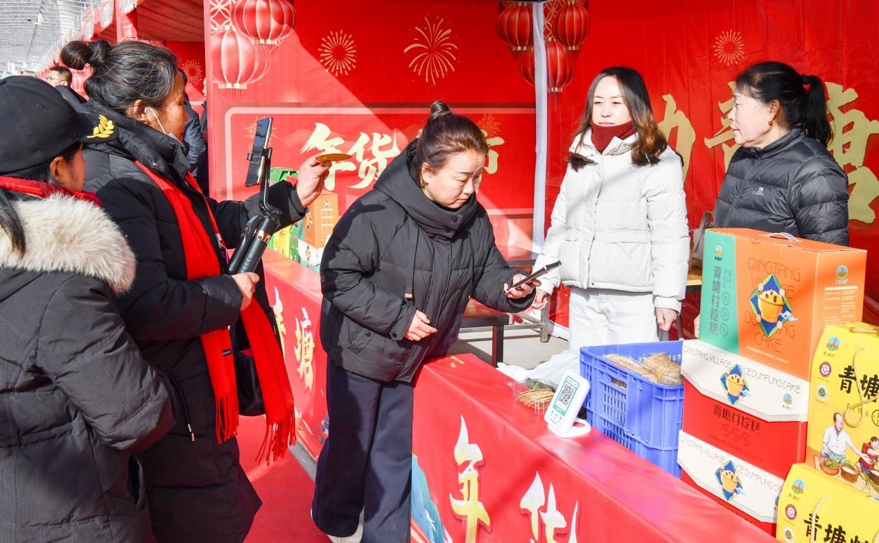 启动仪式结束后,与会嘉宾参观了年货展销区,网红达人同步开启首场直播带货,村民、游客穿梭于摊位之间,争相选购地道年货,前青塘村洋溢着浓浓的年味。(严晓声 安洋)