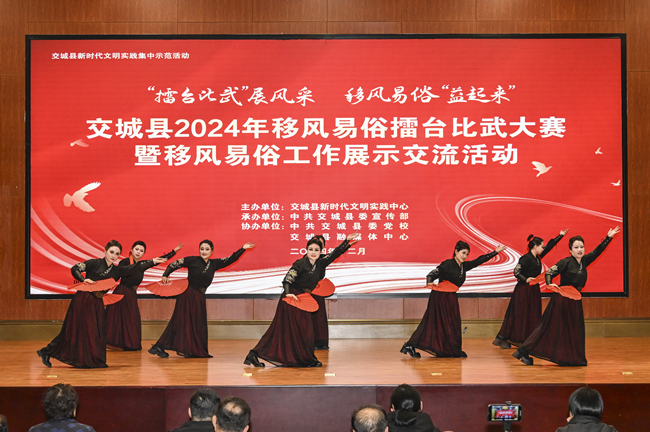 在推动省级文明县城创建的过程中,交城县将移风易俗作为关键抓手,举行擂台比武赛,让参赛人员在知识竞答、三句半、情景小品等节目中,展示出对政策和新规新俗的深刻理解。交城县大力开展类似的特色活动,在各乡镇的集市上设置普法教育、健康义诊、非遗展演等摊点,将医保报销等知识融入生活化的剧情中,举办“月满交山”乡村音诗会等活动,以多元形式让文化触角延伸到城乡各角落。