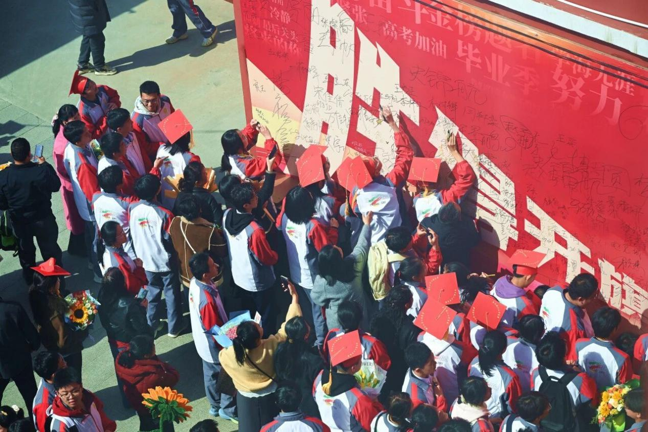 最后,全体学子跨越“成人门”,走进“成才门”,在签名条幅上写下自己的名字,投递写给未来的“时光信件”。