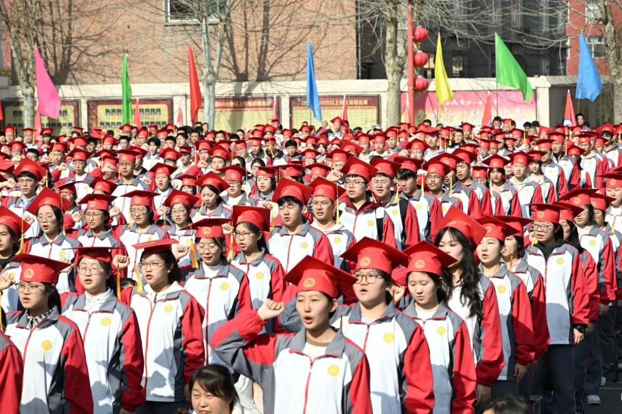 高三年级部主任雷明宇回顾了学子们三年来的成长点滴,从课堂诵读到赛场拼搏,从模考失利到重整旗鼓,见证了大家的蜕变与成长。他勉励同学们珍惜时光,用奋斗书写青春答卷,绽放属于自己的光芒。