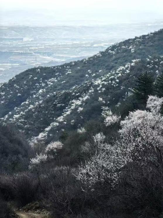 近日,白彪岭漫山遍野的花朵竞相绽放,将山乡装点成春意盎然的美丽画卷。(孙大军 摄)