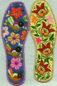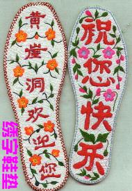 一、优点:采用纯棉料,手工绣制,防臭、防汗、除脚气,表面绣制图案色多样,既具有观赏价值,又具有按摩脚底功能,质量上呈,价格实惠,老少皆易。 二、规模:15--44号鞋垫各号齐全。 三、花色图案品种: 1、花卉类有:牡丹类、荷花类、梅花类等十几种名花图案。
