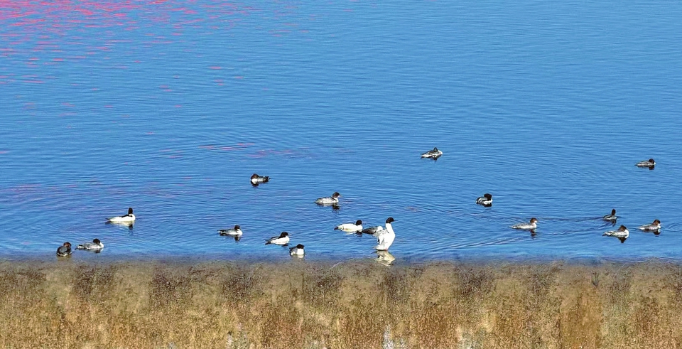 "原标题:碧水禽踪1月6日,太原汾河景区漪汾桥段水域,成群水禽在粼粼波光间悠然游弋,时而觅食、时而嬉戏,尽显盎然生机。" 碧水禽踪