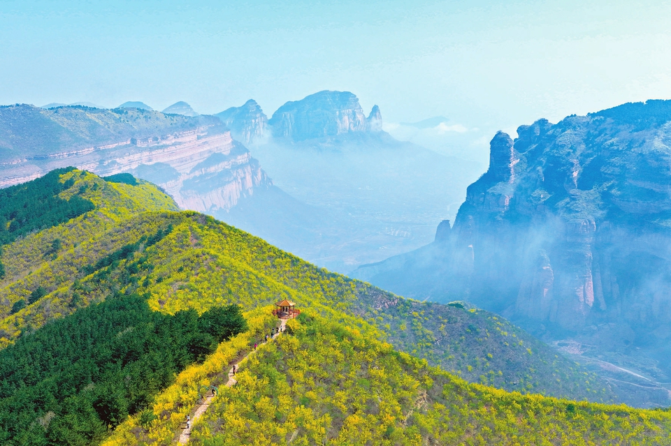 "原标题:连翘绽春 太行叠翠4月9日,黎城县洗耳河景区听松岭春意盎然。" 连翘绽春 太行叠翠