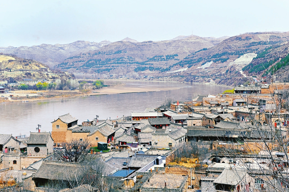 "原标题:九曲黄河第一镇4月12日,吕梁市临县碛口古镇,滔滔黄河水与明清古建筑群交相辉映,勾勒出“九曲黄河第一镇”的壮美图景,尽显古镇独有的历史底蕴与自然神韵。" 九曲黄河第一镇