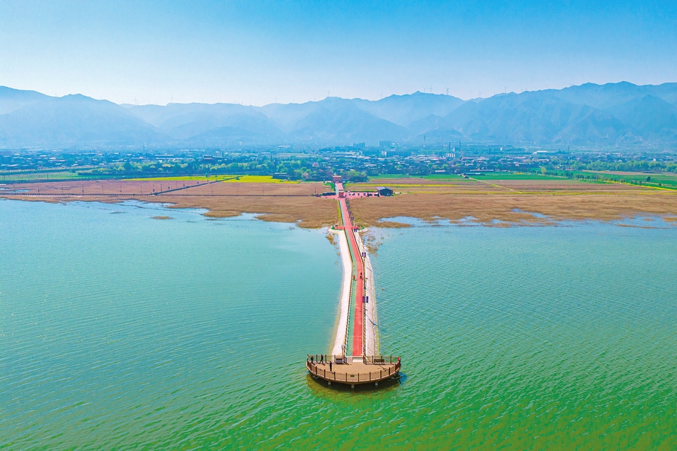 "原标题:生态文旅新亮点4月1日,俯瞰位于运城市盐湖区解州镇西元村的女盐池生态景观廊道,蜿蜒的彩虹步道与碧绿湖水相映成趣,湖光山色尽收眼底,成为当地生态文旅新亮点。" 生态文旅新亮点 原标题:满园春色景如画三月三十一日,太原晋祠公园春意盎然。 满园春色景如画 "原标题:杏花绽放引客来3月26日,山西博物院东门地下通道旁,杏花进入盛花期,粉白花朵缀满枝头,市民驻足赏花,感受春日生机。" 杏花绽放引客来 "原标题:春染曹川3月25日,航拍视角下,黄河一号旅游公路平陆县曹川段蜿蜒如带,穿行于山野间。" 春染曹川 "原标题:一隅静读 满城书香三月二十八日,太原市图书馆内,众多市民沉浸阅读、静心自习,在书香中充实自我,尽享静谧学习时光。" 一隅静读 满城书香 "原标题:城市生态与现代建筑交融的诗意画卷3月26日拍摄的临汾洰河大桥,与水面倒影、岸边新绿,共同绘就出一幅城市生态与现代建筑交融的诗意画卷。" 城市生态与现代建筑交融的诗意画卷