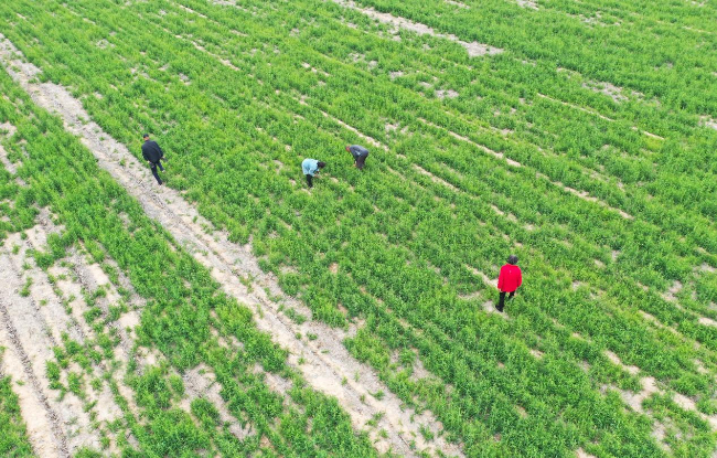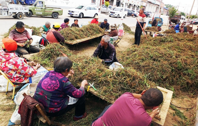 近日,山西省运城市的远志、黄芪、柴胡、防风等近百种中药材长势喜人,药农们抓紧时间除草防虫、加工销售,田间地头一派繁忙景象。