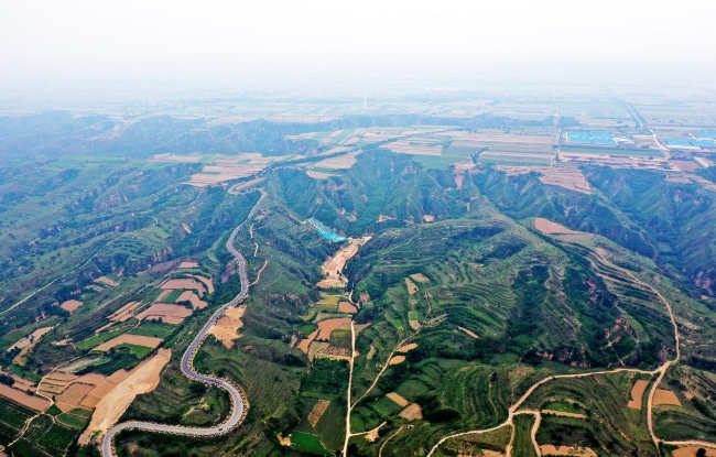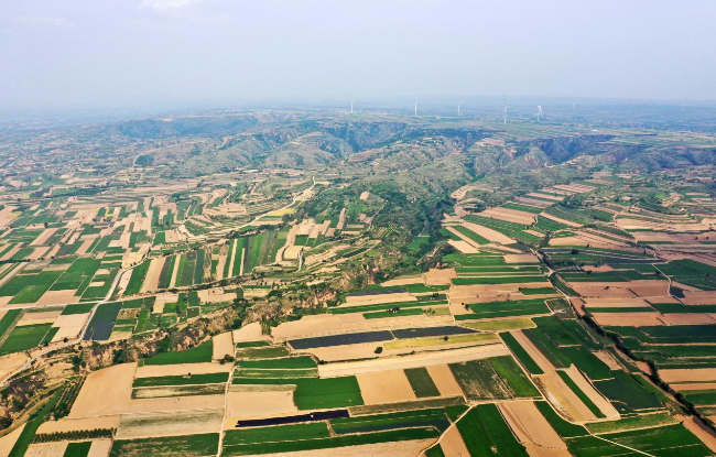 空中俯瞰中药材基地。(高新生 摄)