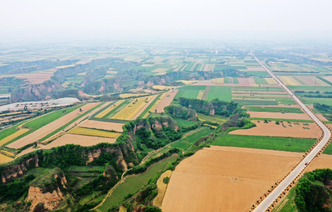 在运城市新绛县、稷山县、闻喜县,20余万亩连片中药材基地郁郁葱葱,中药材与麦田等交相辉映,美不胜收。