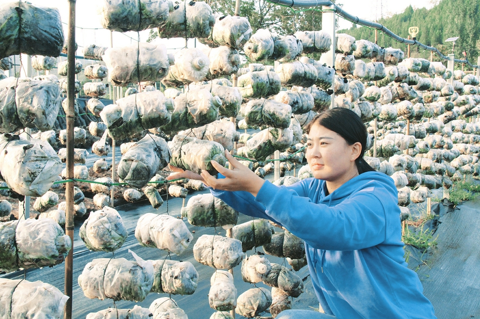 6月5日,阳城县蟒河镇泥河村食用菌种植基地,农民正在观察菌棒培育木耳的生长情况。近年来,该县依托当地生态资源优势,因地制宜发展循环经济,众多农户靠栽培食用菌走上了致富路。(陈来全摄)