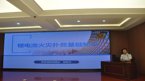 宣讲人正在讲述锂电池火灾扑救基础知识。