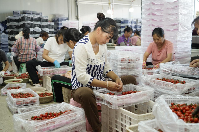 眼下,正是“阳高红”西红柿上市的季节。8月1日凌晨5点,大同市阳高县罗文皂镇福兴蔬菜专业合作社里,200多名村民采摘、分拣、打包、装车,开始了一天的忙碌。