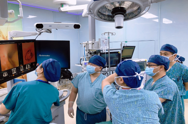 山西白求恩医院多位专家分析病情、多次讨论后,结合患者情况,决定为其实施支气管镜下热蒸汽消融术。经过周密的术前准备,呼吸介入团队在手术室为患者实施了“支气管镜下热蒸汽消融术”。
