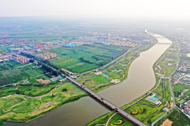 航拍汾河新绛段。(高新生 摄)