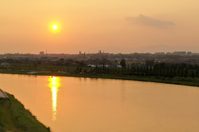 夕阳西下,汾河新绛段的美景。(高新生 摄)