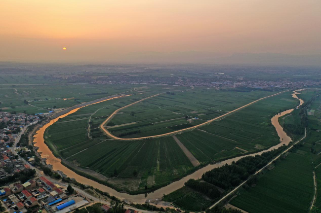 近日,在汾河新绛段,田园、乡村、公路、桥梁、夕阳相映成趣,美不胜收。近年来运城市,新绛县持续加大汾河流域生态环境和防洪防汛等方面的综合治理,努力保障境内汾河不断流。