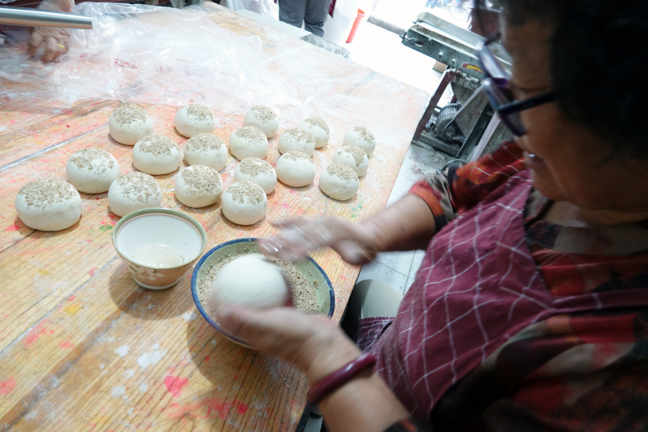 晋南花馍传承人正在捏制月饼花馍。(高新生 摄)