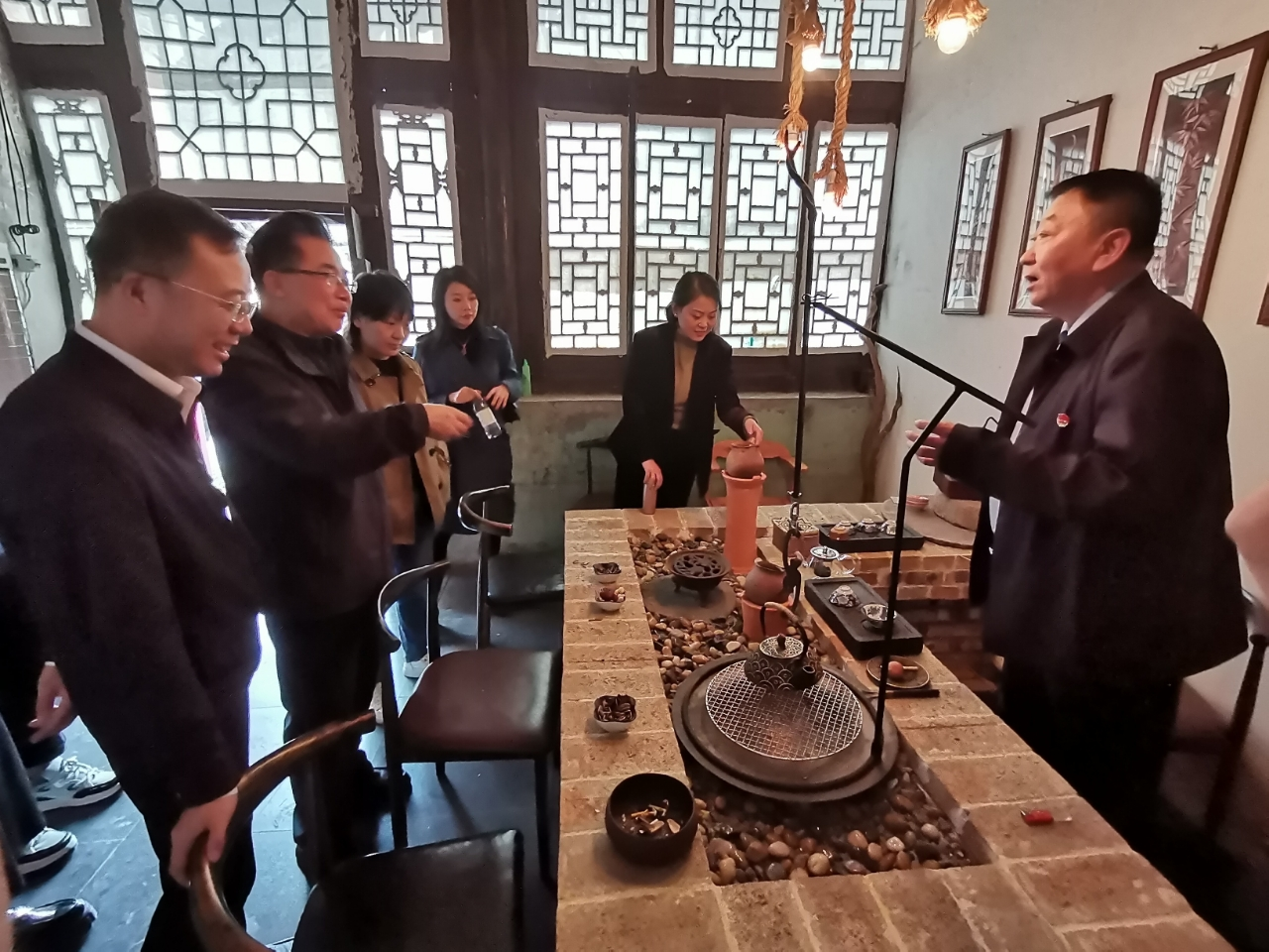 从千年古村磁窑村到满山翠柏的卦山风景区,从交城县非物质文化遗产传习中心到解爱英堆绫工作室……采风一行人一路走,一路看,一路思,一路议。