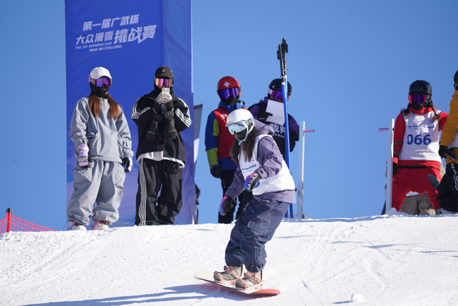 裁判长范悦介绍说,参赛选手年龄最大的50岁,最小的18岁。其中,青年选手占据65%左右。相比双板项目,单板项目报名人数更多,占报名选手的近72%。