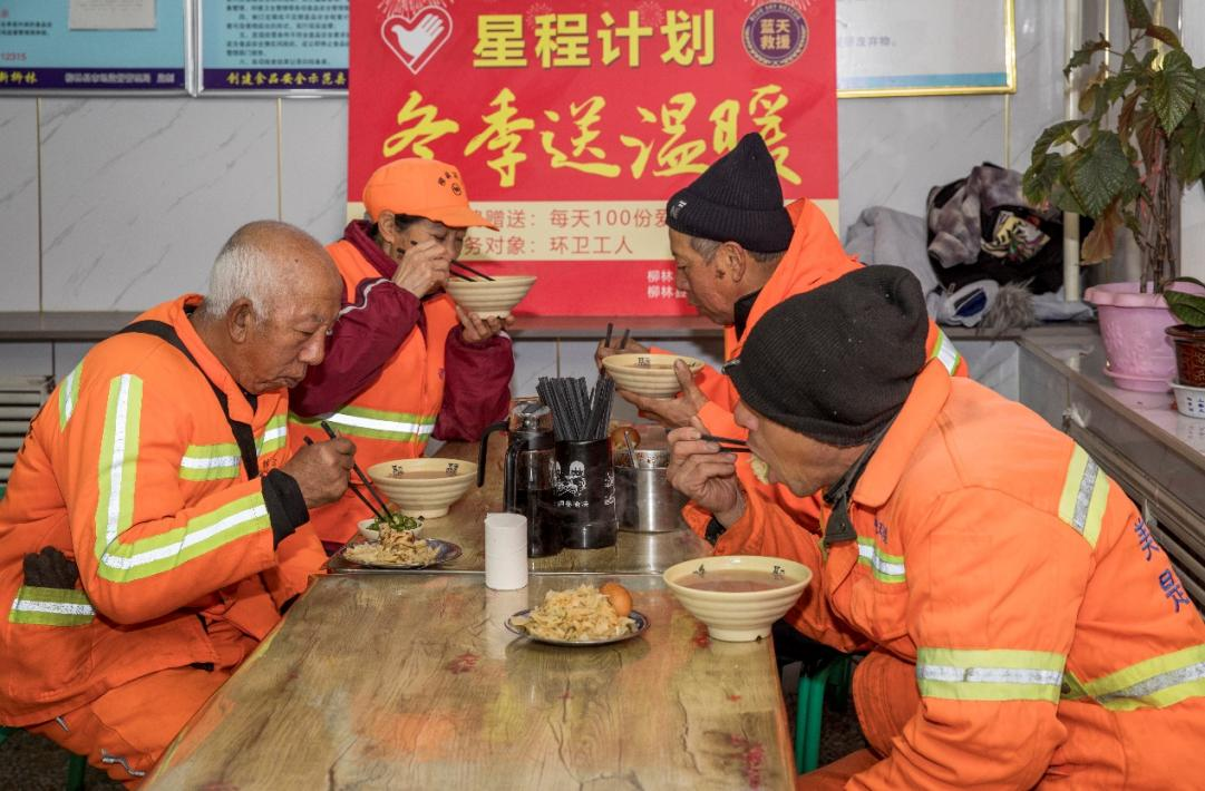 为解决一线环卫职工早餐问题,进一步营造关爱环卫工人的社会氛围,1月13日起,共青团柳林县委开展为期1个月的“星程暖冬”——冬季送温暖志愿服务活动。
