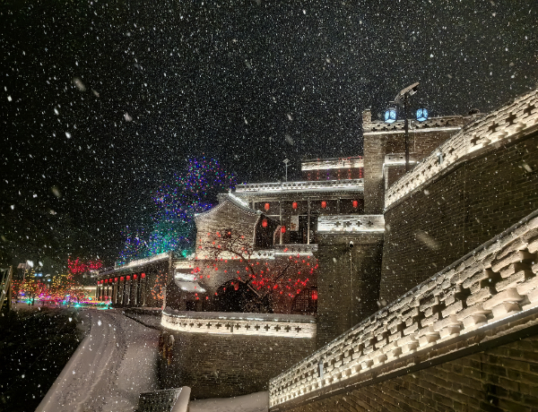 雪花轻轻飘落在百年古村里,将古村装点得如梦似幻。(白鹏伟)