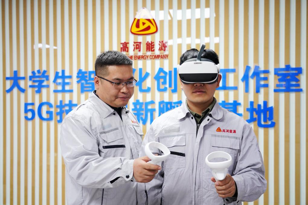 图为高河能源公司技术人才正在探索5G技术安全巡检创新应用场景