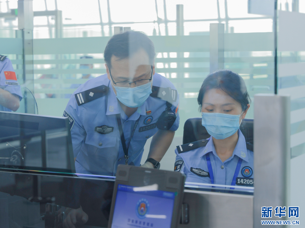 执勤民警在前台查验核对证件。新华网 发