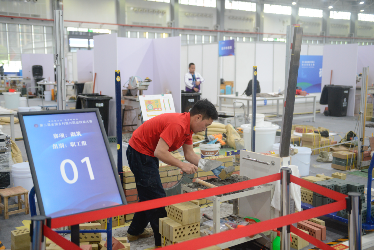 5月8日至10日,以“展技能风采 促乡村振兴”为主题的第二届全国乡村振兴职业技能大赛在贵州省贵阳市举行,来自全国的32个代表团共701名选手在砌筑、汽车维修、农机修理、电工等11个比赛项目(职工组、学生组)中展开激烈角逐。