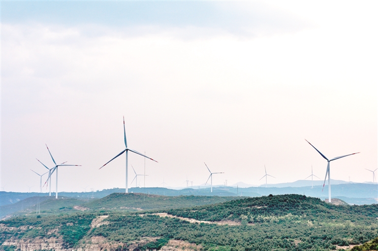 风力发电机在山间“捕风为电”。温荣鑫摄