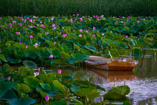 近日,大同市天镇县南洋河生态湿地公园内百亩荷花陆续开放。