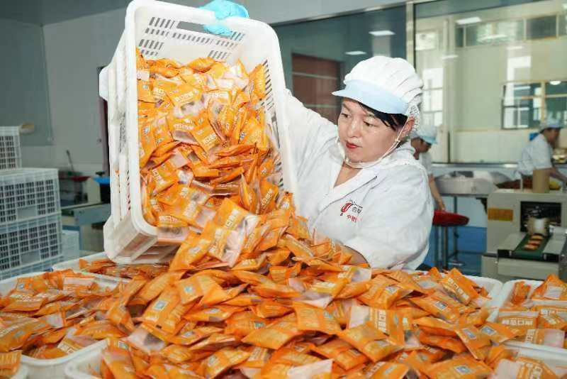 去核、净洗、蒸煮、消毒、脱水、包装……阳高县中驰发展有限责任公司生产线上,杏果化身为杏脯、杏核、杏仁等产品。此外,阳高县引进杏酒生产企业,以阳高县地理标志产品“京杏”为原料,生产清冽爽口的杏酒,深受消费者喜爱。