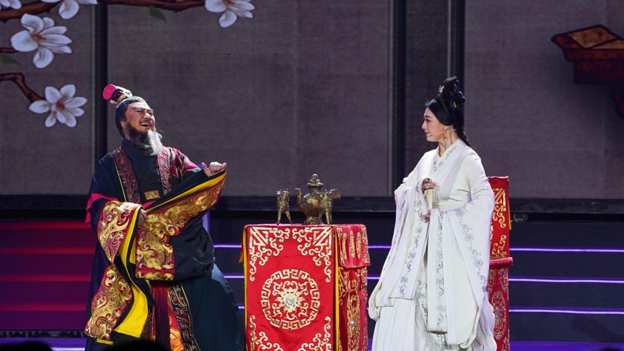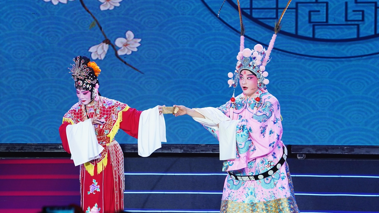 中国梆子大会金奖得主申晓东、山西省杏花奖获得者李爱龙表演上党梆子《黄鹤楼》。