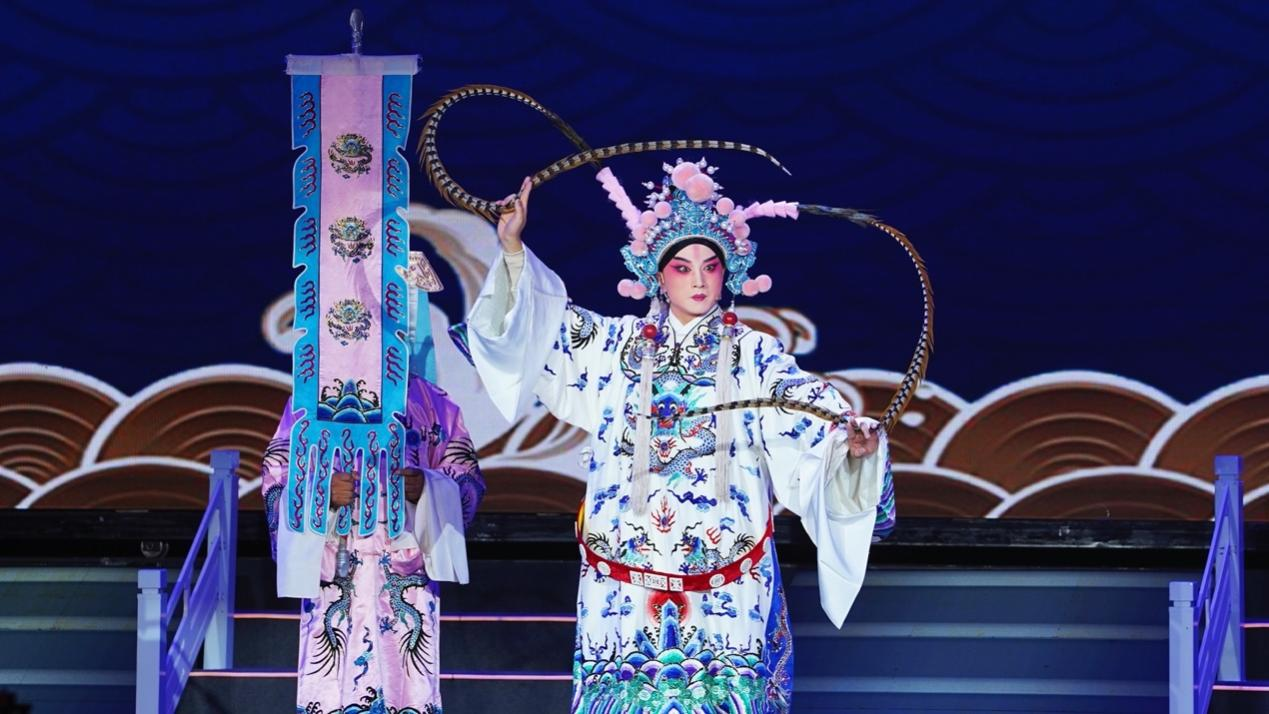 中国戏剧梅花奖获得者汪育殊、全国产业行业戏曲演唱金奖获得者项薇表演徽剧《小宴》。