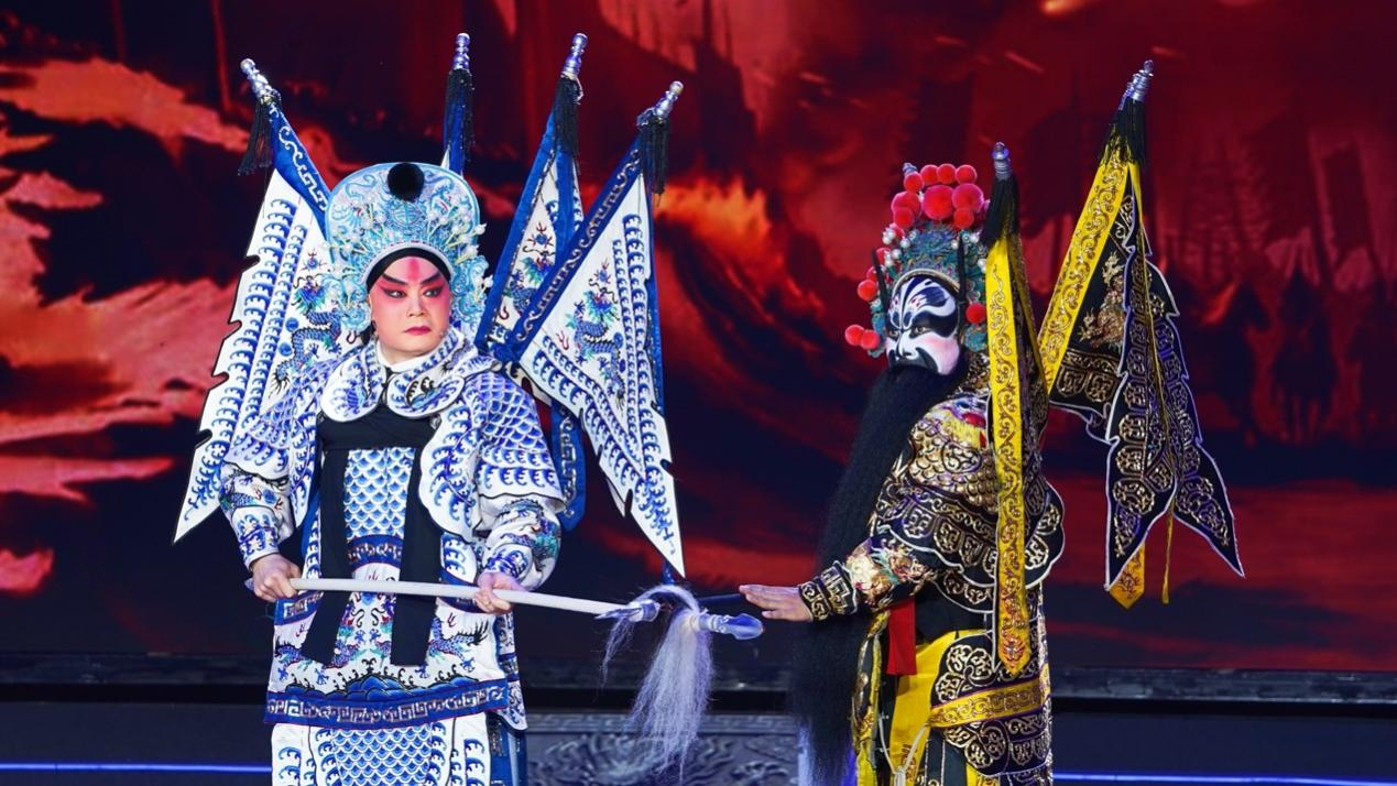 中国戏剧梅花奖获得者李宏图、京津冀戏曲青年领军挑战赛金奖榜首获得者王瀛政表演京剧《壮别》。