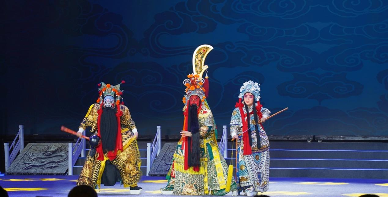 中国戏剧梅花奖获得者武凌云,演员程利恒、王胜军表演晋剧《关公》。