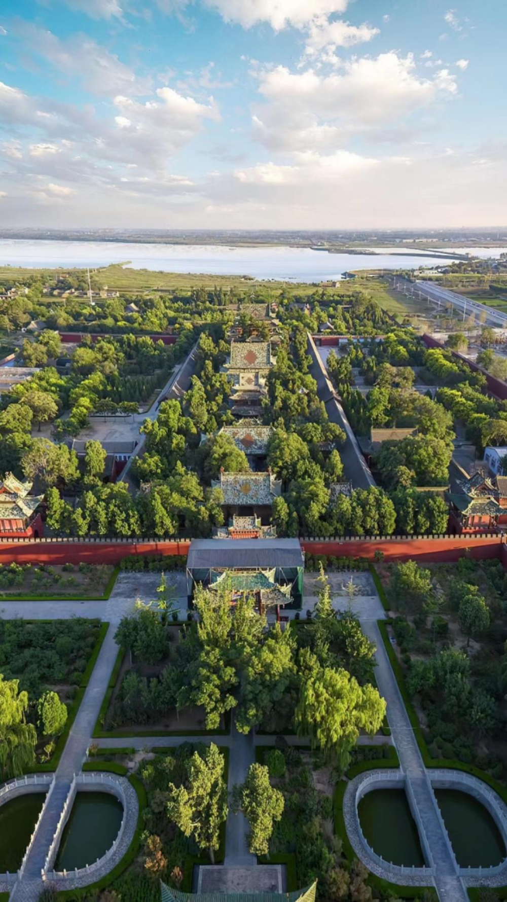 站在关帝庙景区,北眺盐湖、南望中条,五龙峪河如玉带般相伴,整个关公故里文化旅游景区宛如一幅山海钟灵的文化历史画卷。