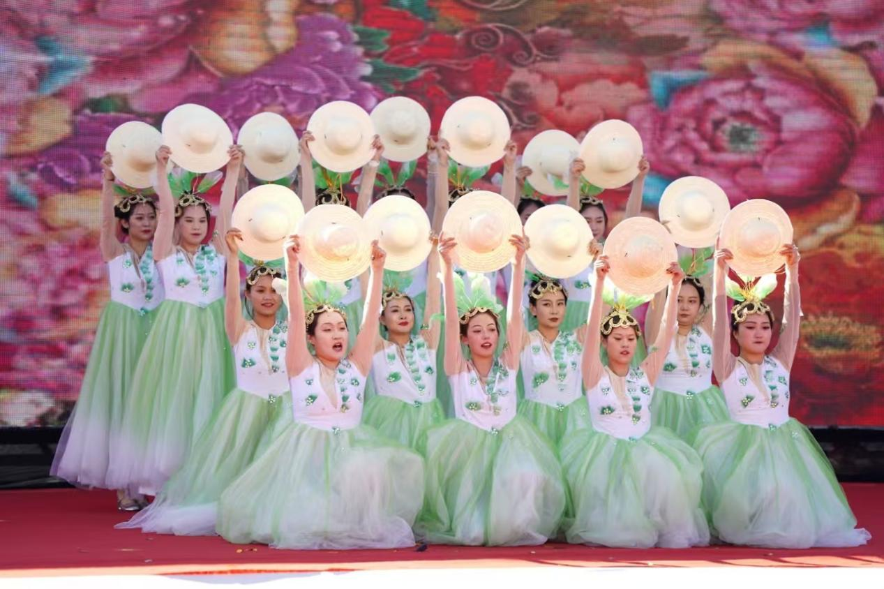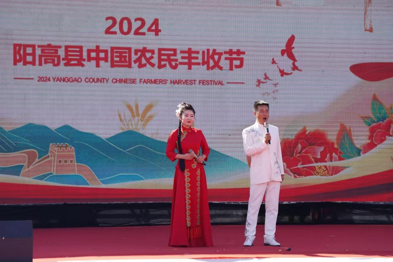 2024年阳高县中国农民丰收节在歌舞表演《盛世鼓舞》中拉开了序幕,二人台《五哥放羊》、数来宝《夸阳高 赞丰收》、舞蹈《花开富贵庆丰收》等节目接连上演,精彩纷呈。