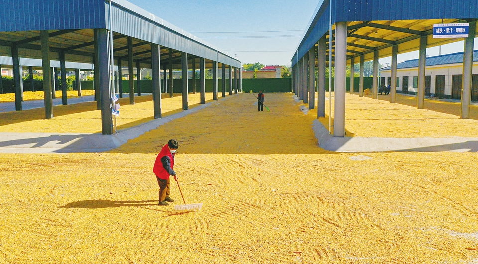 十月十九日,在夏县胡张乡农产品交易市场内,农户正在晾晒玉米,河东大地随处可见丰收场景。