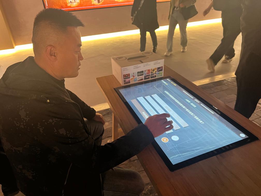 观众在红色课堂体验互动问答,学习红色知识。